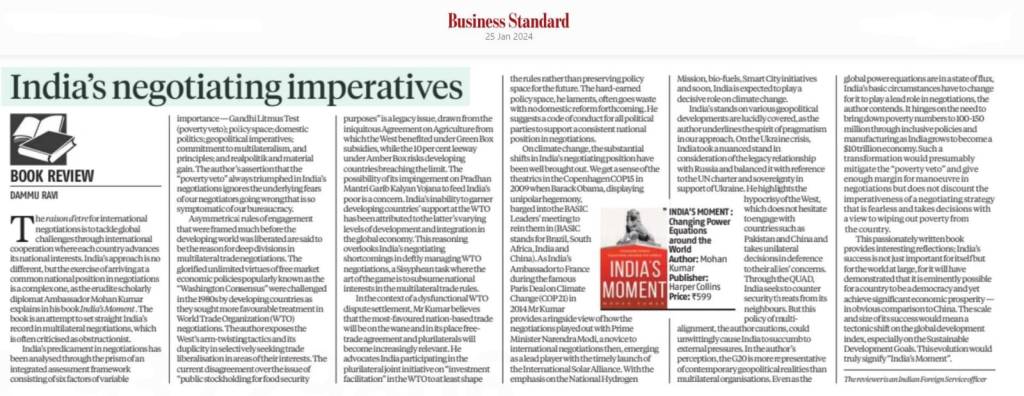 Deep questions need to be asked about how the government arrives at a negotiating position when India contains such a bewildering multitude of stakeholders. How does India advance its national interests and maximise its margin for manoeuvre, despite geopolitical pressures and domestic constraints? Mohan Kumar answers these questions, and many others, in an instructive and enjoyable narrative by introducing a theoretical model called the “Integrated Framework” to analyse India’s negotiating briefs and diplomatic motivations.